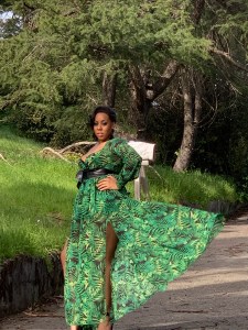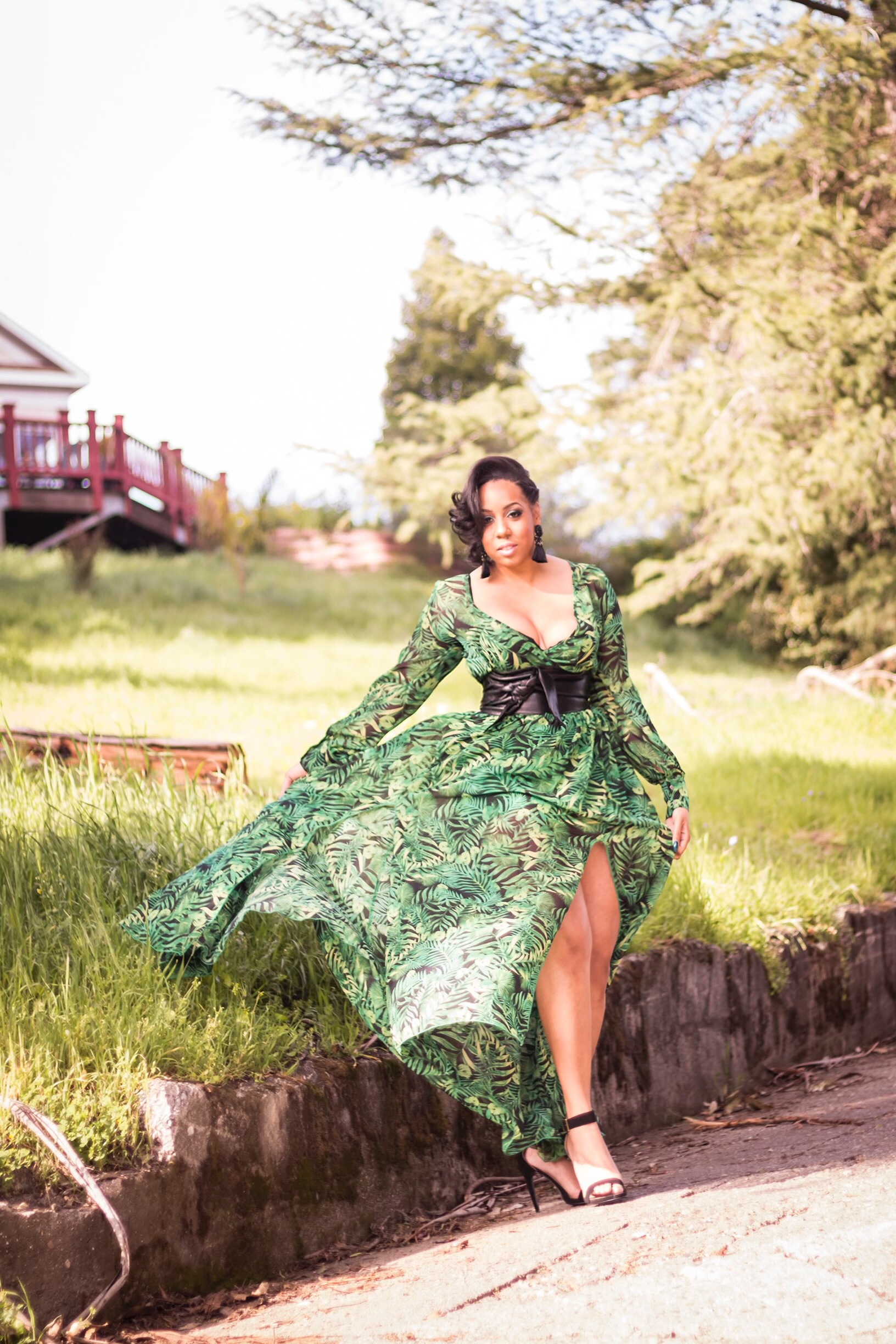 To my surprise there was a second option. A long flowing dress with a split on each side. It had green palm trees on it and it totally reminded me of JLo in the early 2000s when she wore that sheer dress when she was dating music mogul Sean P. Diddy Combs.